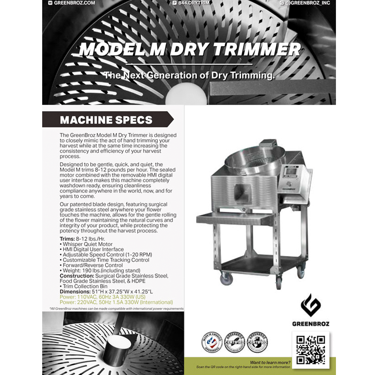 Made In AmericaMachine Specifications- Trim Rate: 8-12 Pounds Per Hour