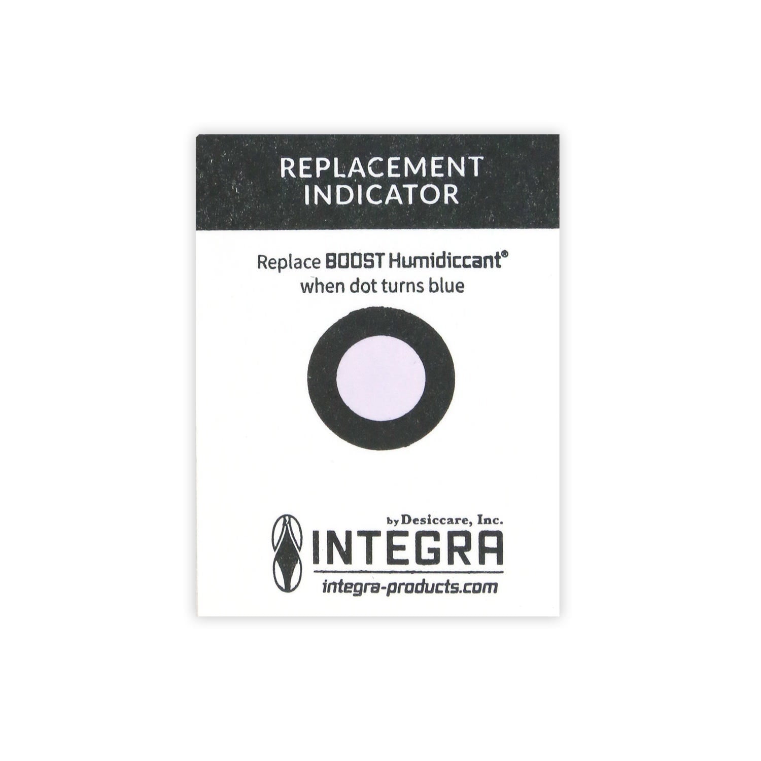 The Integra BOOST pack will continue to modulate the humidity—adjusting humidity levels as needed (i.e. if the container is opened and closed) to keep the relative humidity at the tested perfect levels of either 55% or 62% RH. The circular dot on the included Replacement Indicator Card will turn from red to blue when it's time to replace your Integra BOOST pack with a fresh one.
