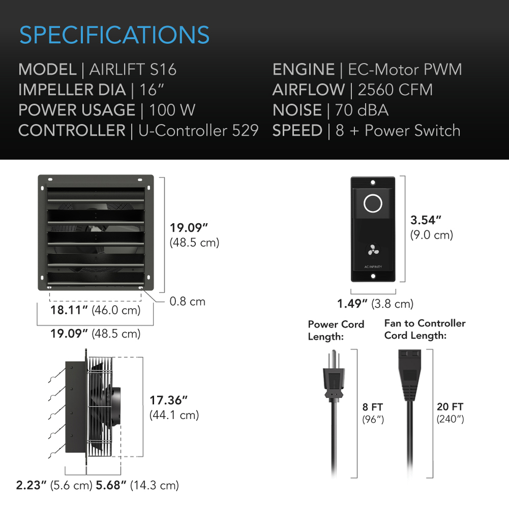 AC Infinity AIRLIFT Series Shutter Exhaust Ventilation Fan with Speed Controller