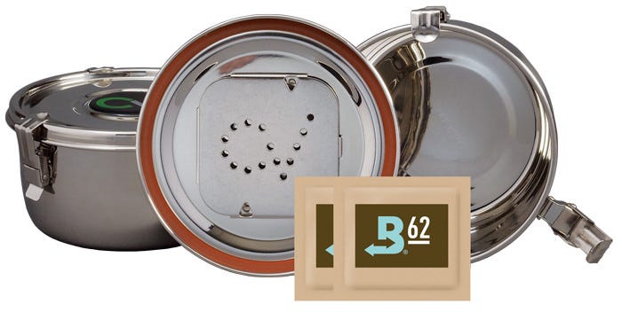 Ready To Go / Comes With : Each Large CVault comes with one (1) each 8 gram 62% Boveda ® Humidity Control Pak, place the Boveda pak into the CVault and lock in freshness.