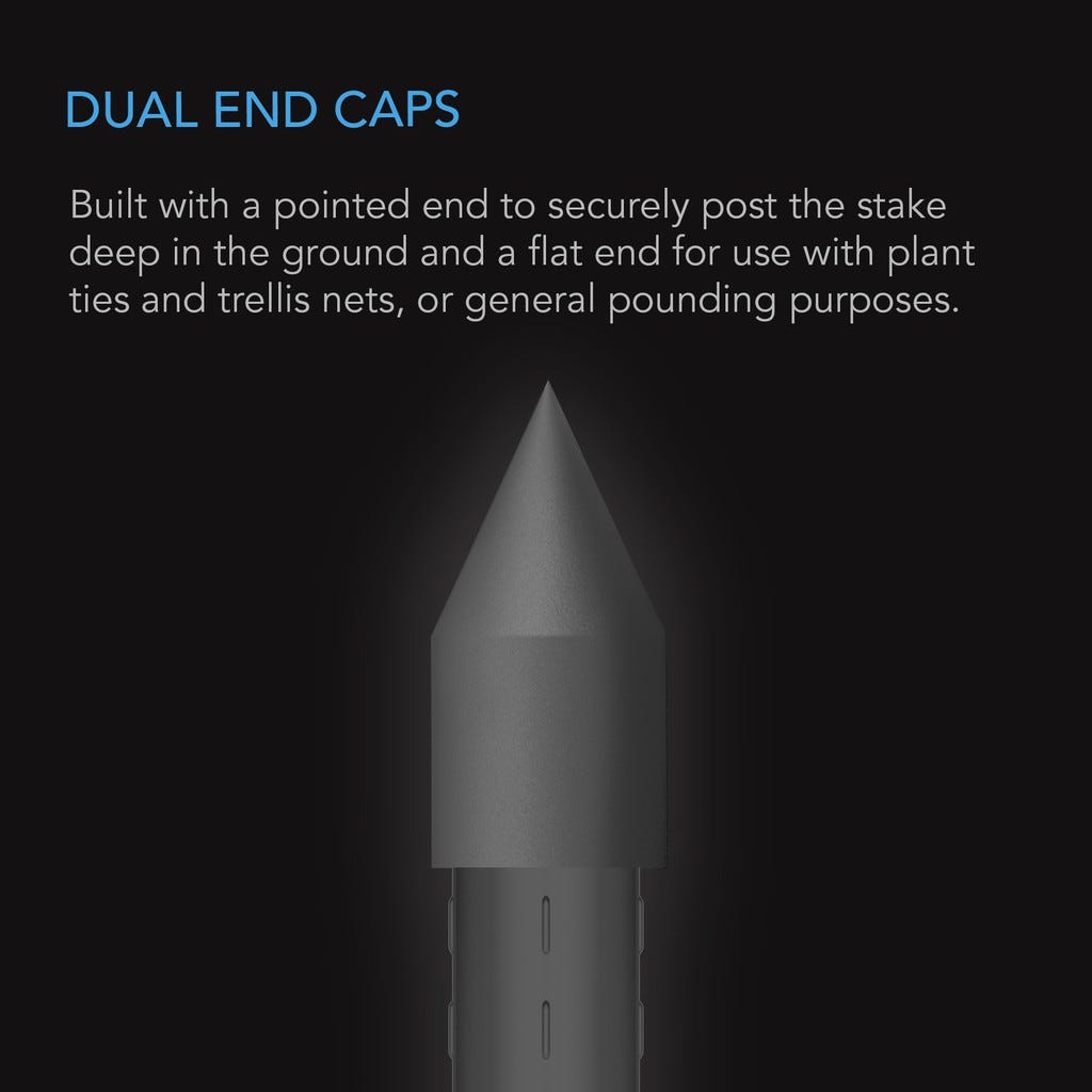 - Versatile Design: The flat end of each stake is designed with gaps that are perfect for threading plant ties, trellis nets, or for general pounding purposes. This makes the stakes highly versatile and suitable for a wide range of gardening applications.