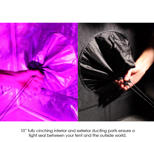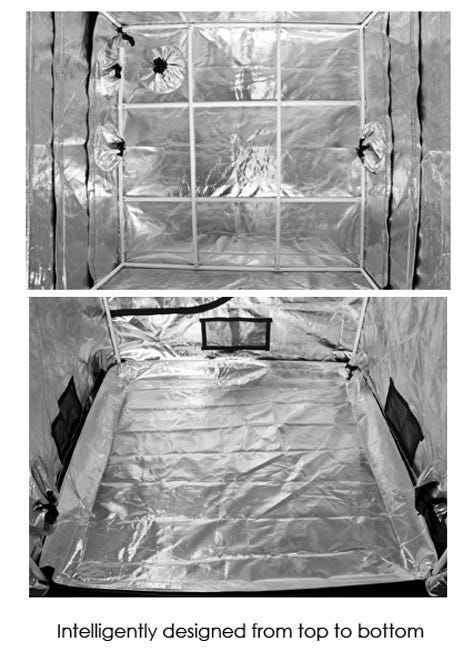- BEST QUALITY - No plastic anywhere. Biggest zippers on the market. Diamond reflection technology. Double cinching ducting ports. Tool pouch. Bug resistant pre-filters. Sturdy flood pool.
