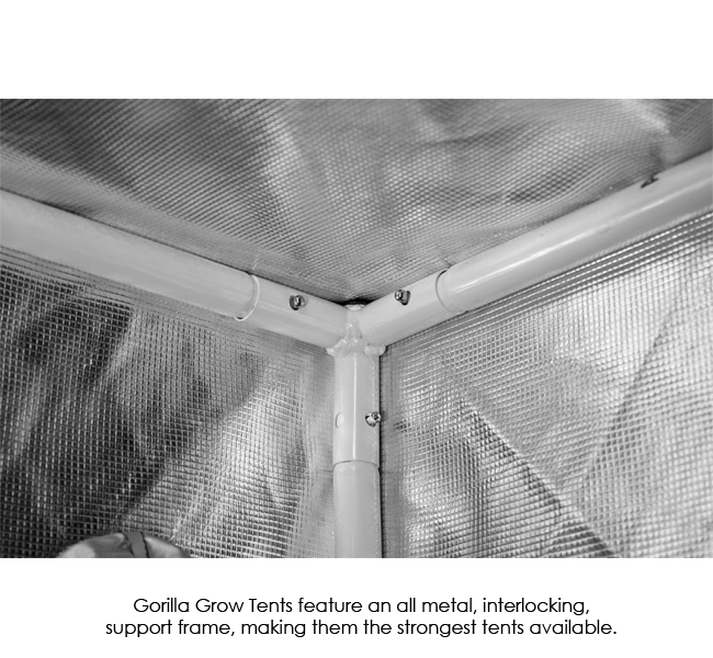 - STRONGEST - Features a solid metal interlocking frame that is up to 2 - 5x stronger than any competitor's grow tent frame. Gorilla Grow Tent frames are so strong they can hold up to 300 lbs.