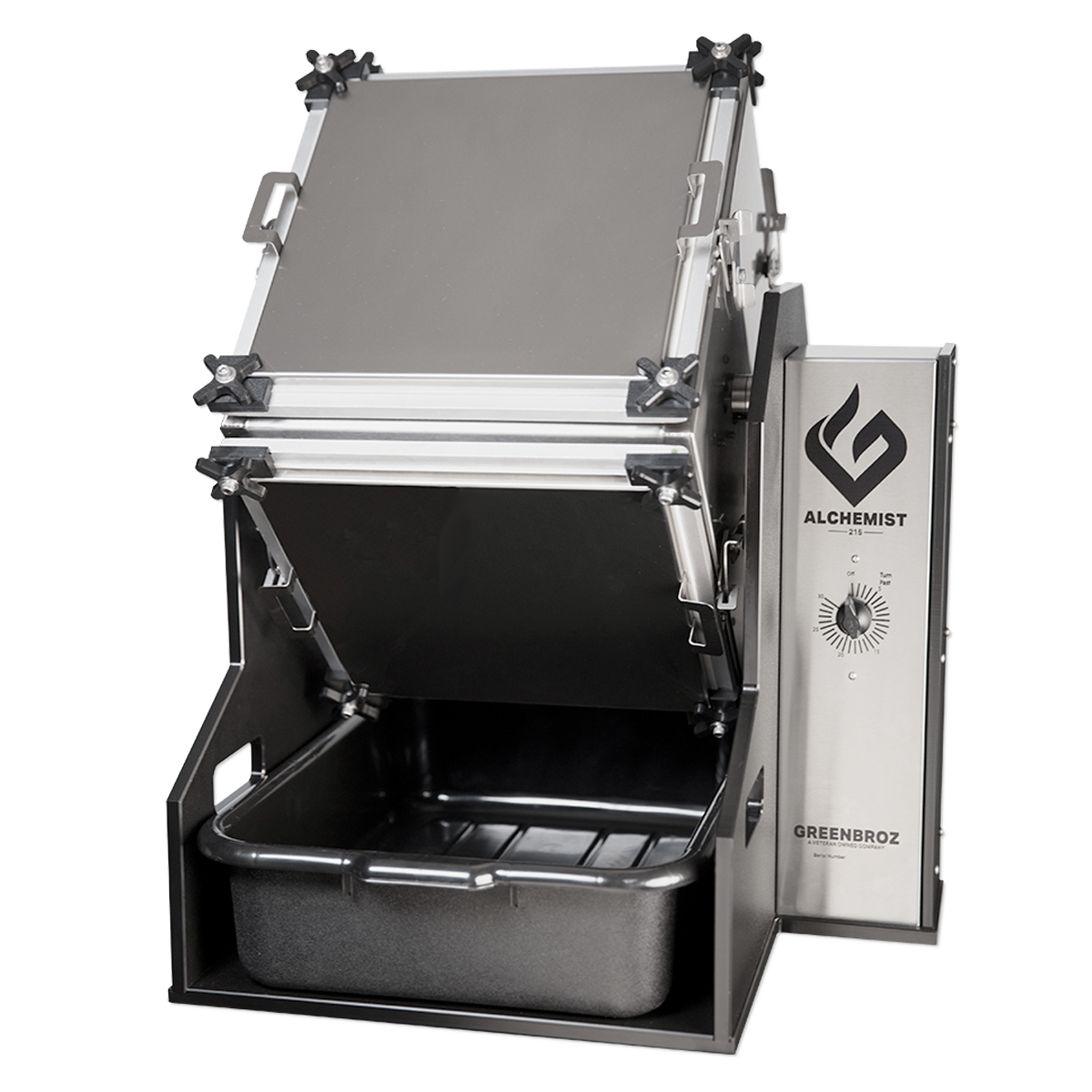 The GreenBroz Alchemist 215 Trichome Extractor Dry Sifter and Tumbler is a dry-sift, solvent-free trichome extractor designed to ensure you are getting the most out of your harvest. Top-of-the-line 180 Micron Screens combine with four trichome cartridges, allowing for simple yet effective trichome collection.