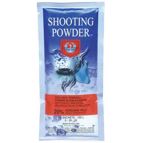 The #1 bloom enhancer on the market! House & Garden Shooting Powder (0-9-20) induces a second surge of flower production during the last three weeks of the flowering cycle — results in up to 30% increase in yield. Compatible with all nutrient lines, this finishing agent will get you the results you've always wanted. Sold in individual 65 gram sachets.